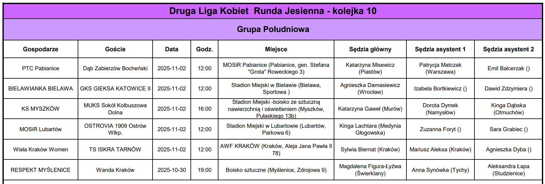 W niedzielę 2 listopada rozegrana zostanie 10. kolejka rundy jesiennej, w której nie zabraknie ciekawych pojedynków zarówno w grupie południowej, jak i północnej. Znamy już pełną obsadę sędziowską i miejsca rozegrania meczów.