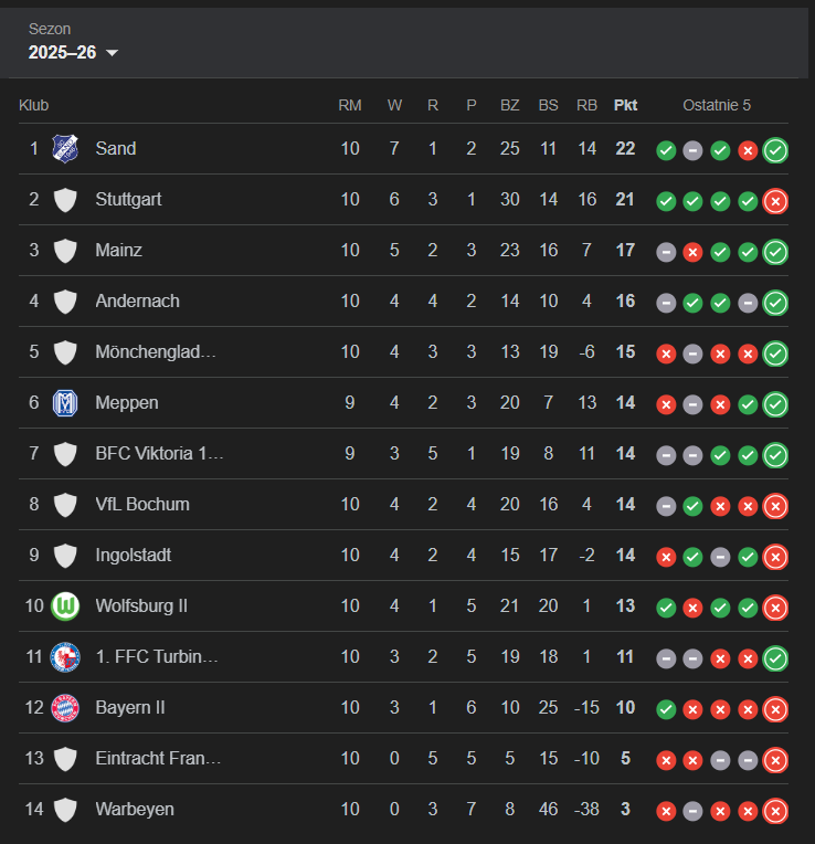 10. kolejka 2. Bundesligi Kobiet przyniosła sporo emocji, zwłaszcza dla kibiców SC Sand, którzy po raz pierwszy w tym sezonie mogli świętować objęcie prowadzenia w tabeli. Wszystko dzięki triumfowi 2:1 nad rezerwami Bayernu Monachium II, a bohaterką meczu została Julia Matuschewski, która pewnie wykorzystała rzut karny w 86. minucie, zapewniając swojej drużynie komplet punktów. Było to już szóste trafienie w tym sezonie polskiej napastniczki, która w świetnym stylu potwierdza swoją formę strzelecką.
