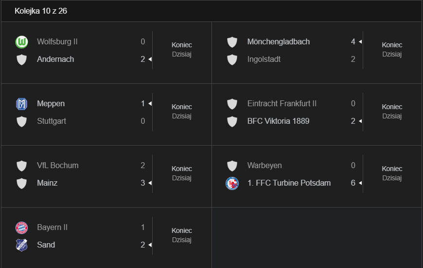 Na koniec serii gier imponujące zwycięstwo odniosła Turbine Potsdam, która po zmianie trenera rozgromiła VfR Warbeyen aż 6:0. Dublety zaliczyły Amani Mahmoud i Alina Gnädig, a zespół tym samym opuścił strefę spadkową. Z kolei Borussia Mönchengladbach po serii niepowodzeń wygrała z FC Ingolstadt 4:2, pokazując dużą determinację i skuteczność w drugiej połowie.