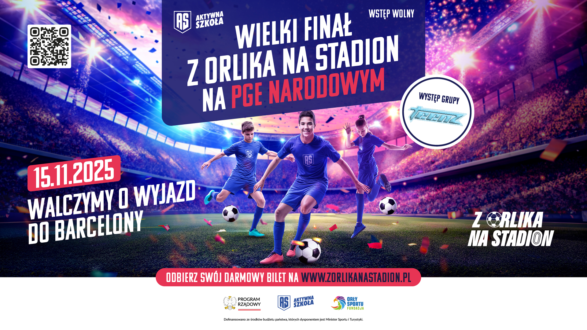 15 listopada 2025 roku na murawie PGE Narodowego odbędzie się wielki finał drugiej edycji ogólnopolskiego turnieju Z Orlika na Stadion. To wyjątkowe wydarzenie wieńczące największy w Polsce projekt piłkarski dla młodzieży, na którym oprócz sportowych emocji kibiców czeka mnóstwo atrakcji i spotkań z gwiazdami sportu i influencerami!