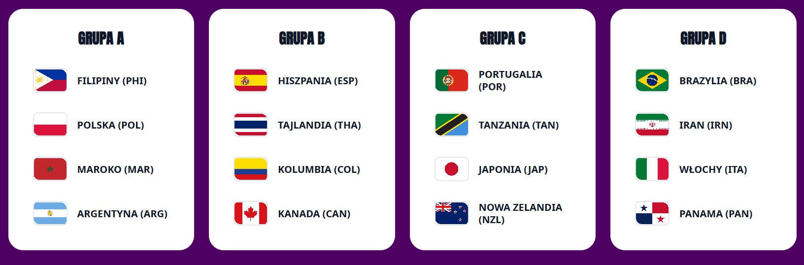 GRUPA A – Filipiny, Polska, Maroko, Argentyna
