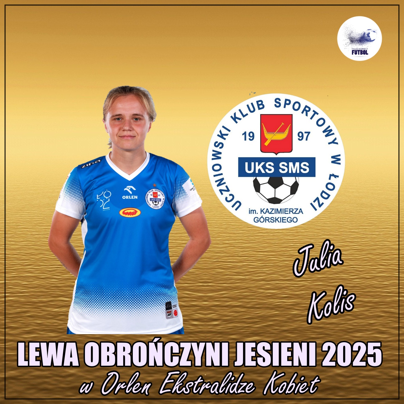 Na ligowej mapie jesieni swoje akcenty miały także zespoły spoza ścisłej czołówki. SMS Łódź zakończył rundę jesienną na ósmym miejscu w tabeli Orlen Ekstraliga. Kolis zagrała osiem spotkań od pierwszej minuty, raz pojawiła się na boisku z ławki, a jej dorobek ofensywny obejmuje jednego gola w wygranym 3:1 meczu z Lech Poznań.