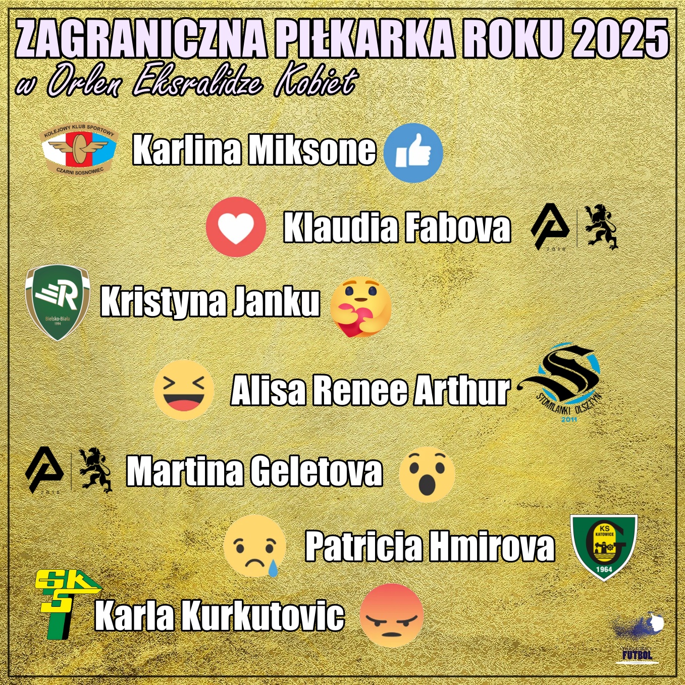 Tytuł Zagranicznej Piłkarki Roku 2025 to wyróżnienie dla zawodniczki, która w krótkim czasie potrafiła zaaklimatyzować się w polskiej lidze i stać się jedną z jej wyraźniejszych postaci. Wyniki plebiscytu potwierdzają, że występy Alesii Arthur zostały wysoko ocenione przez kibiców Orlen Ekstraligi Kobiet.
