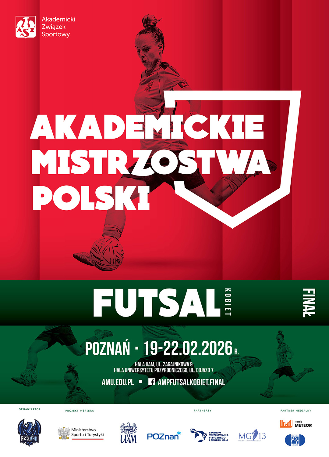 Już niebawem Poznań ugości finalistki Akademickich Mistrzostw Polski w Futsalu Kobiet. Turniej finałowy zaplanowano na dni od 19 do 22 lutego 2026 roku. Organizatorem tego prestiżowego wydarzenia jest AZS UAM Poznań.